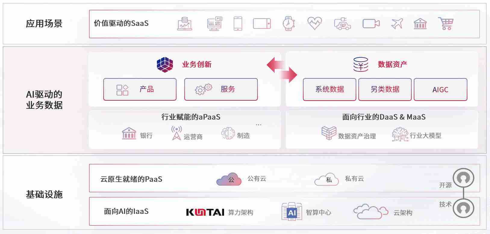 数字时代,,,,围绕企业数字化转型的关键要素,,6合联盟数码开创性的提出数云融合战略和技术体系框架,,,,着力在云原生、、、数字原生、、、AI原生和信创产业上架构产品和服务能力,,为处在不同数字化转型阶段的快消零售、、、汽车、、、金融、、、、医疗、、政企、、、、教育、、运营商等行业客户提供泛在的敏捷IT能力和融合的数据驱动能力,,构建跨界融合创新的数字业务场景和新业务模式,,,,助力企业级客户建立面向未来的核心能力和竞争优势,,,,全面推动社会的数字化、、、智能化转型升级。。